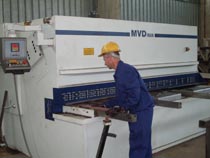 - Hydraulic swing-beam guillotine shear (cutting up to 16 mm thickness and 3050 mm length)